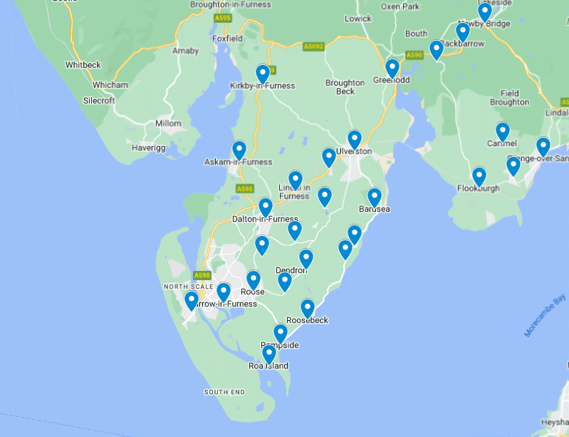 We work together with our customers throughout the Furness peninsula, see all of the areas we cover listed below, if your area isn’t listed and you’re unsure please don’t hesitate to give us a call Â